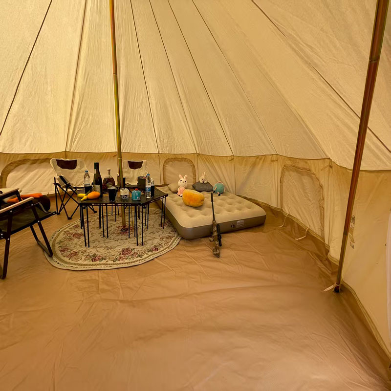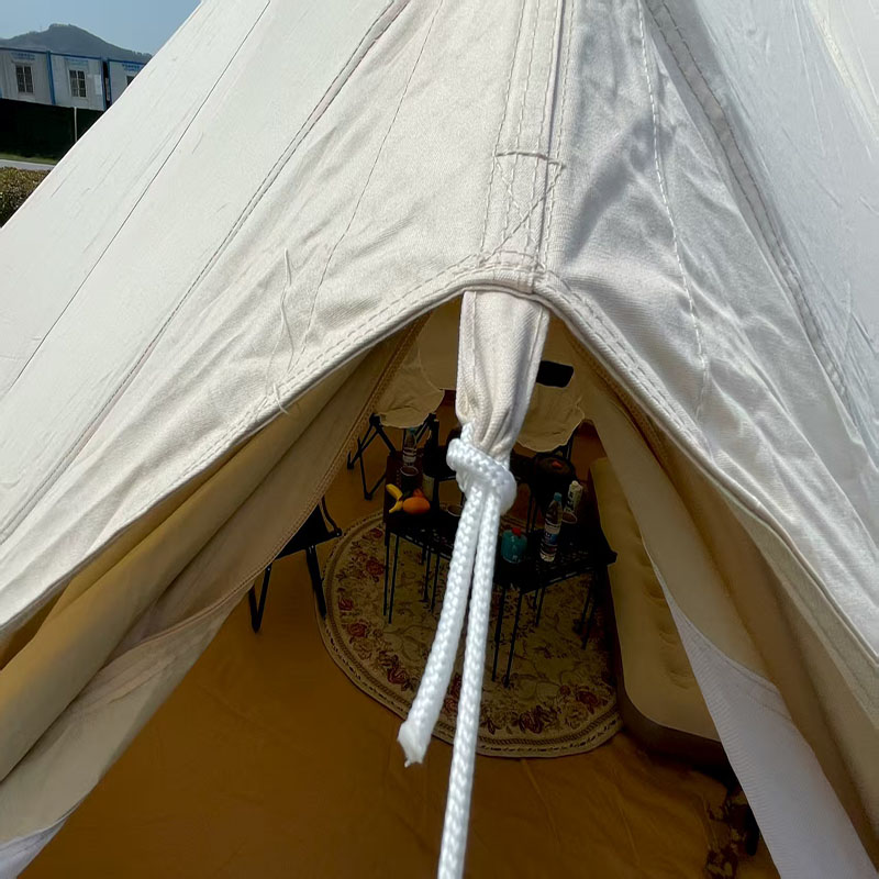 1. The tent fabric is made of beige 285gsm cotton canvas, coated with a waterproof PU layer, with a waterproof index of 3000mm.
